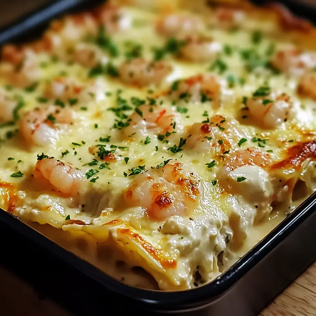 Esta receta mezcla mi pasión por los camarones al ajillo cremosos con capas de pasta tierna. Cada bocado combina mariscos en mantequilla, queso intenso y fideos perfectamente cocinados. Se ha convertido en mi plato estrella para ocasiones especiales cuando quiero sorprender a mi familia y amigos con algo único y sabroso.
